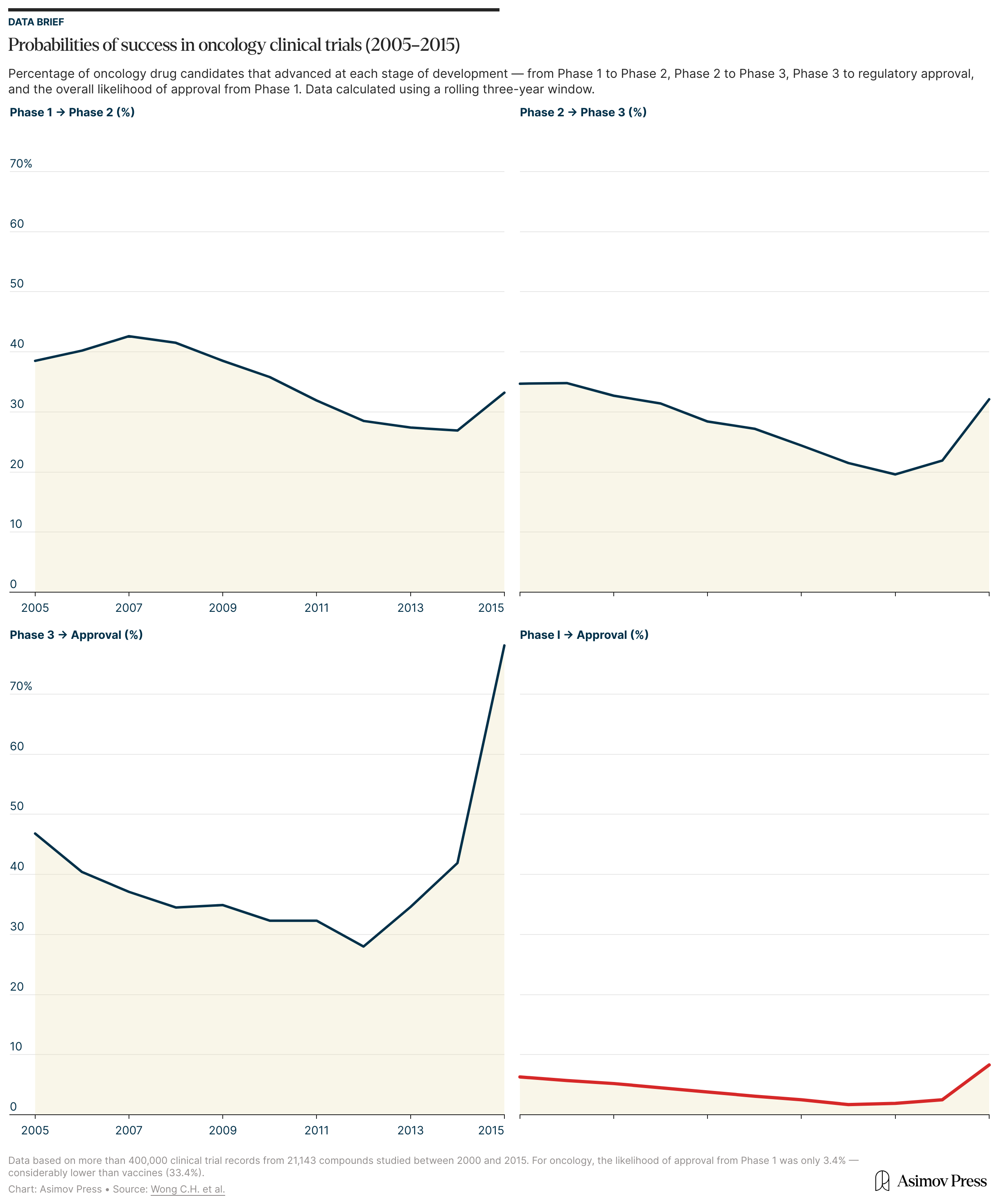 Perhaps unsurprisingly, then, most drugs — about 90 percent — tested on animals fail in human clinical trials. In the worst cases, patients die from organ failure; as happened during a phase II trial of fialuridine, a hepatitis B antiviral drug, in which 5 of 15 patients died from liver failure. (The molecule inserted itself into mitochondrial DNA, halting their replication and killing liver cells.)