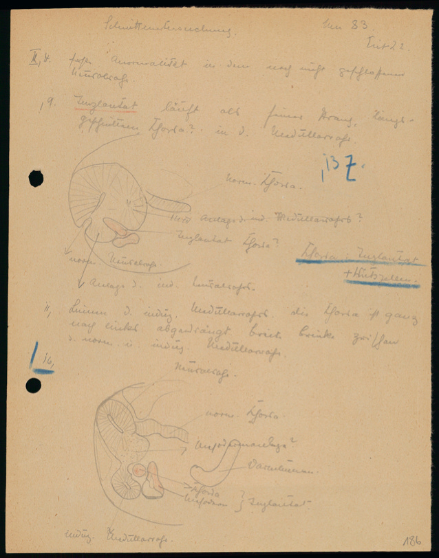 Pröscholdt carefully dissected these embryos and made a series of contrast stainings of thin cross-sections and detailed hand drawings based on them. This allowed her to follow the fates of both host and graft tissues at the cellular level, thanks to their distinct pigmentation.