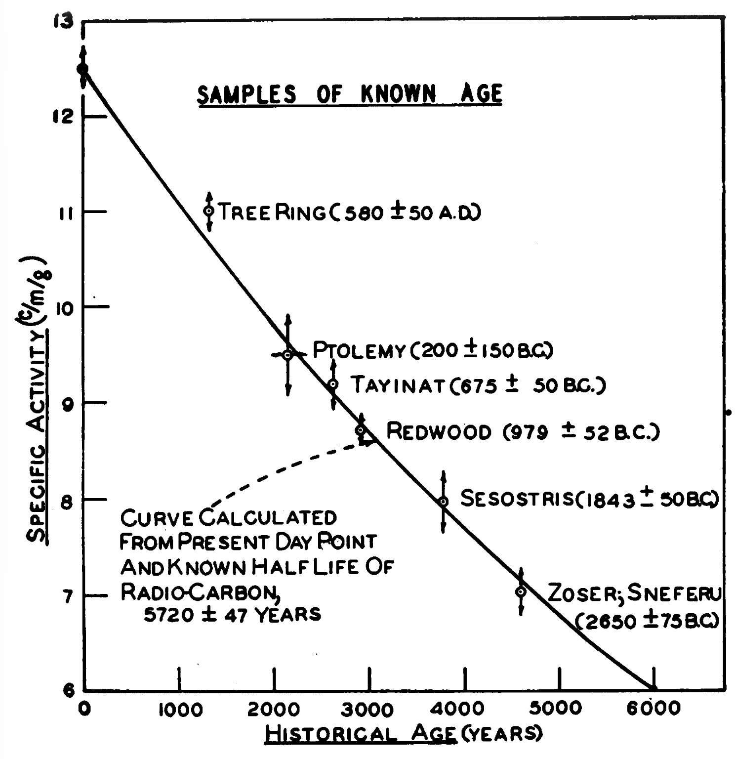Libby published his first radiocarbon dates in 1949, including the famous “curve of knowns” — a validation plot showing that the method accurately dated Egyptian artifacts, sequoia tree rings, and other samples of known age. The impact was immediate. By 1960, when Libby won the Nobel Prize in Chemistry, more than 20 radiocarbon dating laboratories had been established worldwide.4
