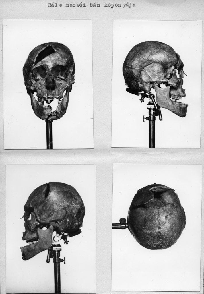 Twenty-three cut marks scored the bones. Far too many for a duel, these were distributed across the skeleton in a pattern that suggested multiple attackers striking from different directions. The wounds indicated that the assault had continued even after the victim fell, with the body further mutilated while on the ground. Bartucz estimated the skeleton belonged to a male between 20 and 25 years old. Based on the body’s location, wounds, and age, he proposed them to be the remains of Duke Béla of Macsó.