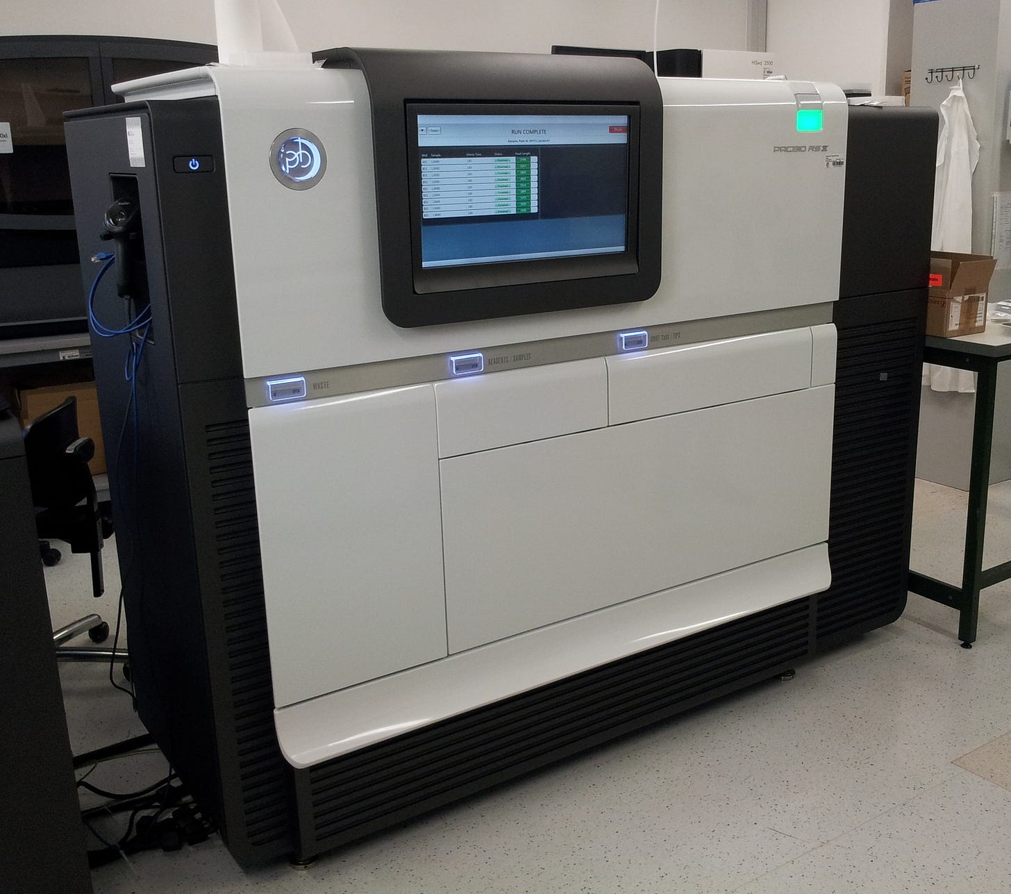 With its core technology in place, PacBio was ready to go commercial. In 2011, the company released the RS sequencing machine, and has since created multiple new machines containing chips with increased numbers of sequencing wells. PacBio calls the technique single molecule real time (SMRT) sequencing, though it’s colloquially referred to simply as PacBio sequencing. Rather than producing short overlapping reads like Illumina, PacBio generates very long reads; at first these were a few thousand bases, but today they can be well over 10,000.