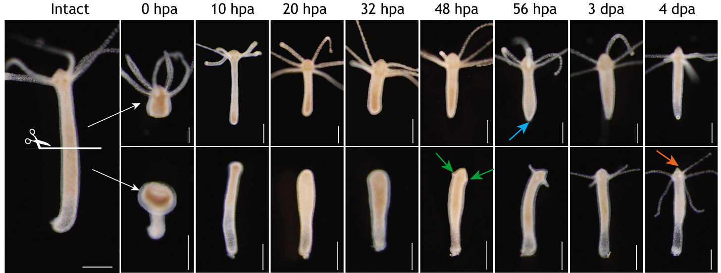 This involved inserting bits of hydra into other hydra and monitoring their growth.