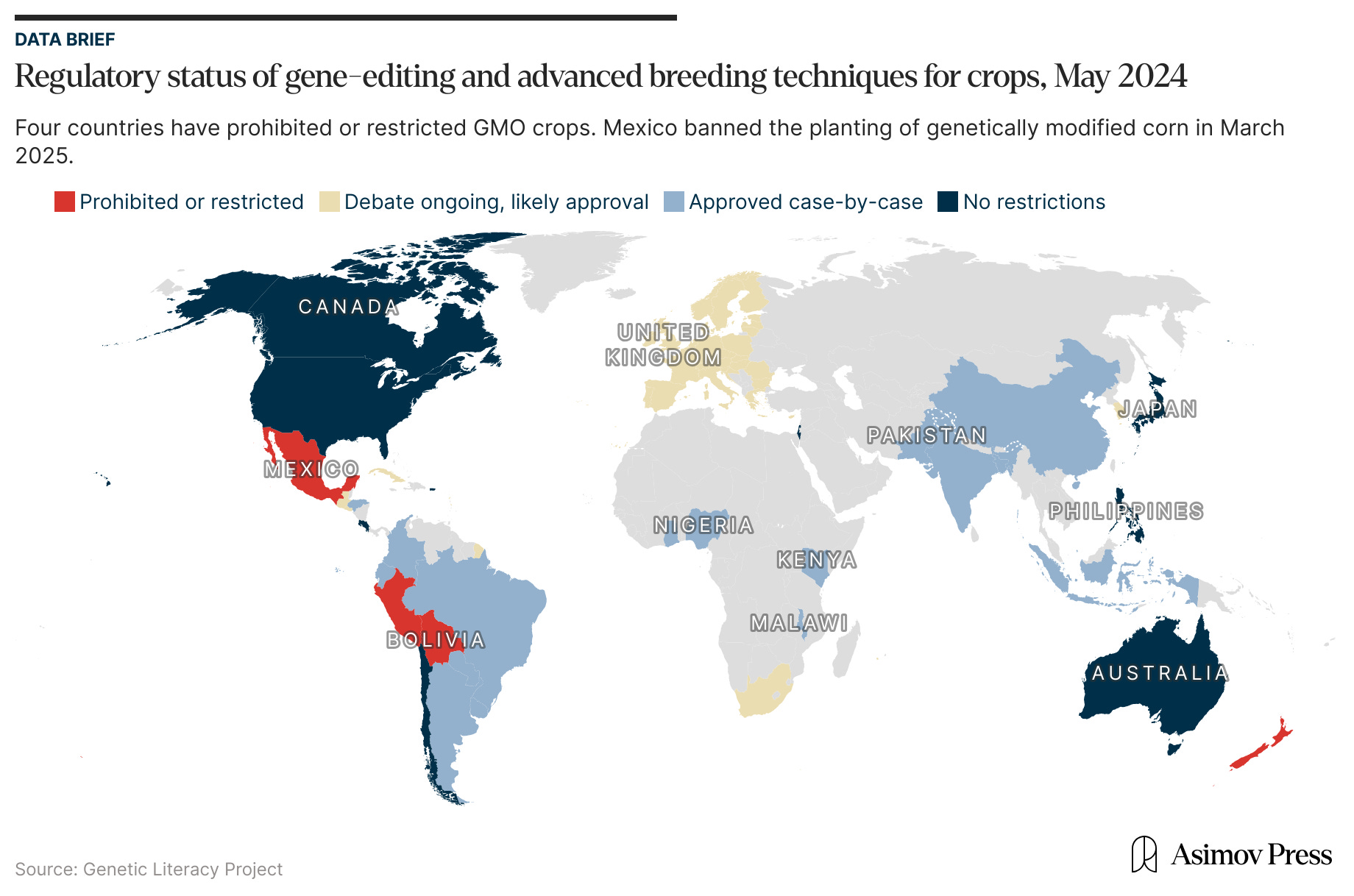 In 2024, Nigeria started growing its first GM cereal — TELA maize3 — which has proven resilient to both drought and several of the region’s most pernicious insect pests. Indeed, the TELA maize roll-out has been an epitome of scientific collaboration and realizing the “promise” of GM. Funding from groups like the Bill and Melinda Gates Foundation and USAID supported an international team of scientists from developing countries in creating crop varieties tailored to their own needs and environments, all while licensing the resulting seeds royalty-free.