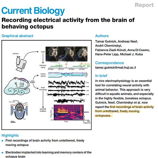 Other recent papers successfully recorded the same neurons from mice over their entire lifespan, which is incredible, and also recorded the brain of a freely-moving octopus for the first time.