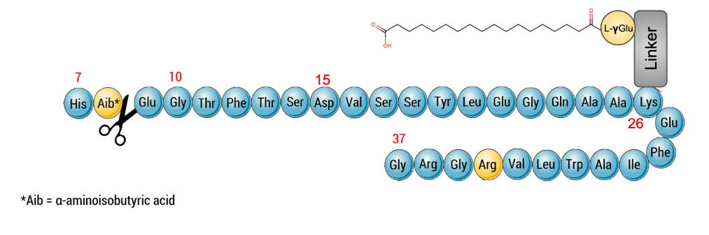 The small percentage of GLP-1 molecules that might survive this journey and arrive into the intestines face a second gauntlet. Once in the blood capillaries, DPP-4 quickly degrades the molecule, and the drug is excreted by the kidneys.
