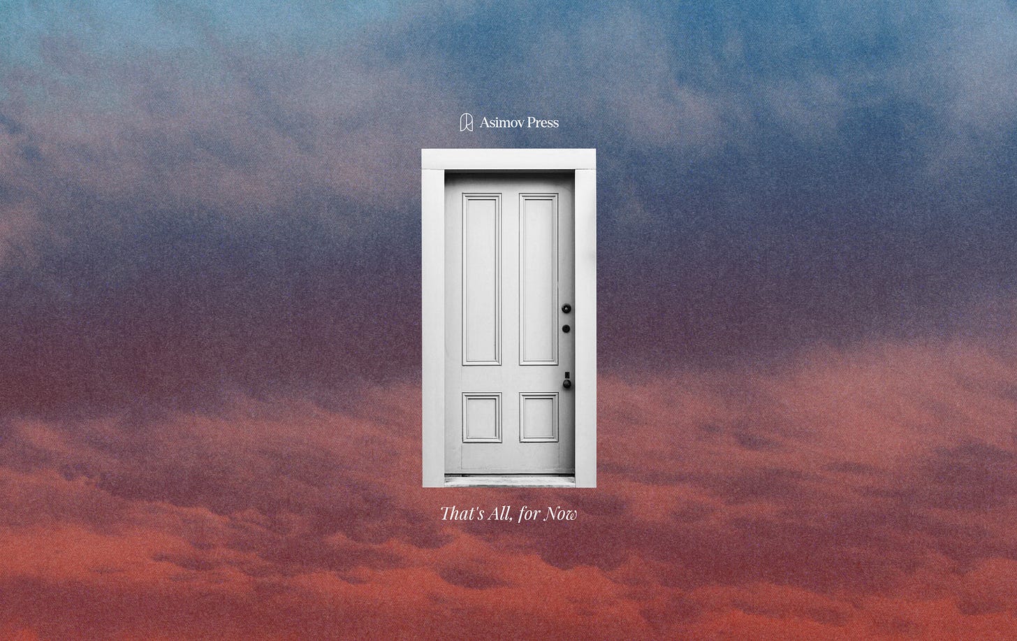 When Asimov Press reemerges, I know that those who lead it will be just as curious about the history and future of science as we have been. Thank you for taking this journey with us.