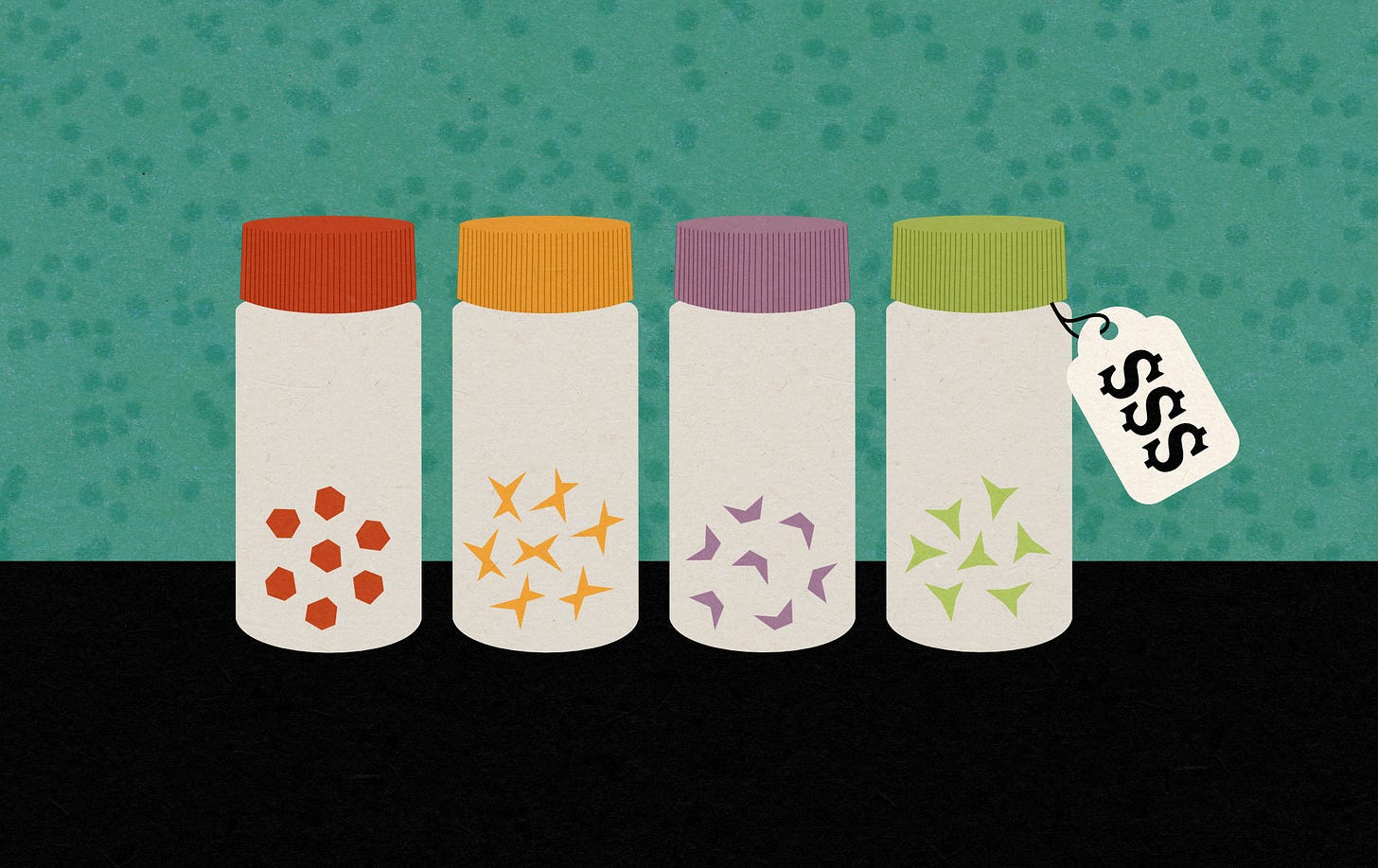 Obtaining prices for individual metabolites was tricky. Most chemical compounds are sold on the market at wildly different purities, each with a different value.9 Many chemicals can be bought in different forms or counterbalanced with different ions.10 Prices vary wildly between vendors — sometimes by orders of magnitude — because of bulk discounts, small market sizes, and volatile supply.