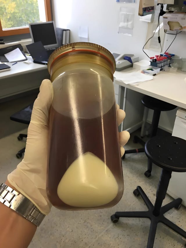 After 8 hours or so, the culture is “spun down” in a centrifuge to yield around one gram (about half a thumb’s worth) of waxy sludge. That’s the bacteria! The equipment required for all this is inexpensive and readily available. The whole procedure requires perhaps an hour of labor ($10-30).