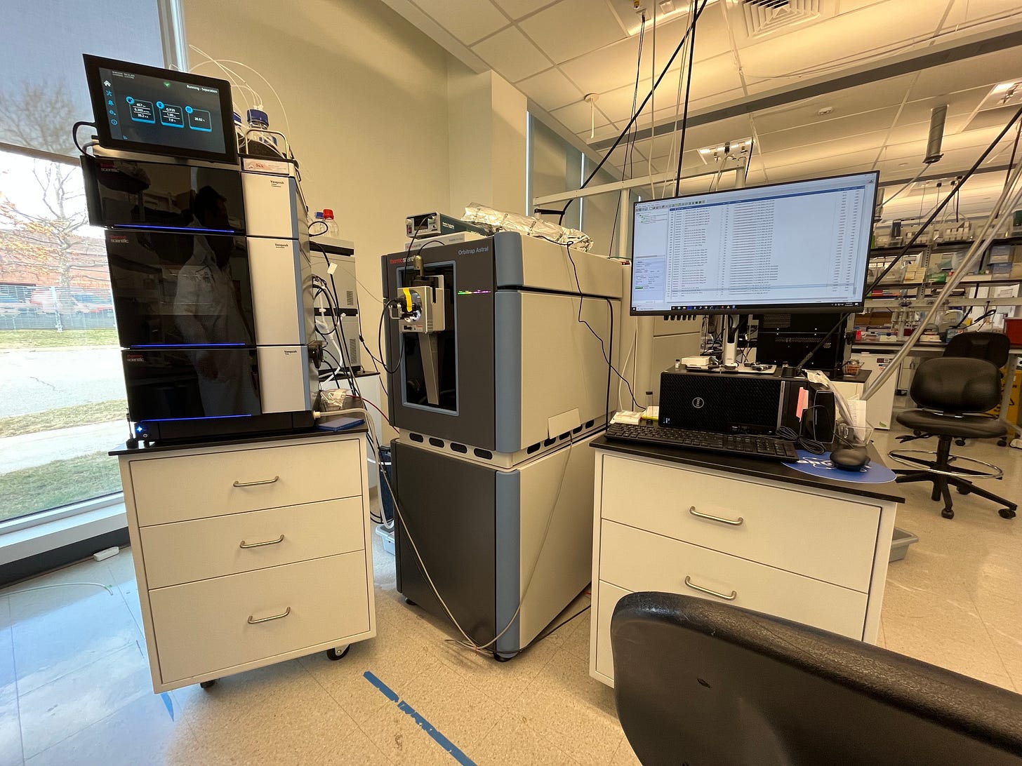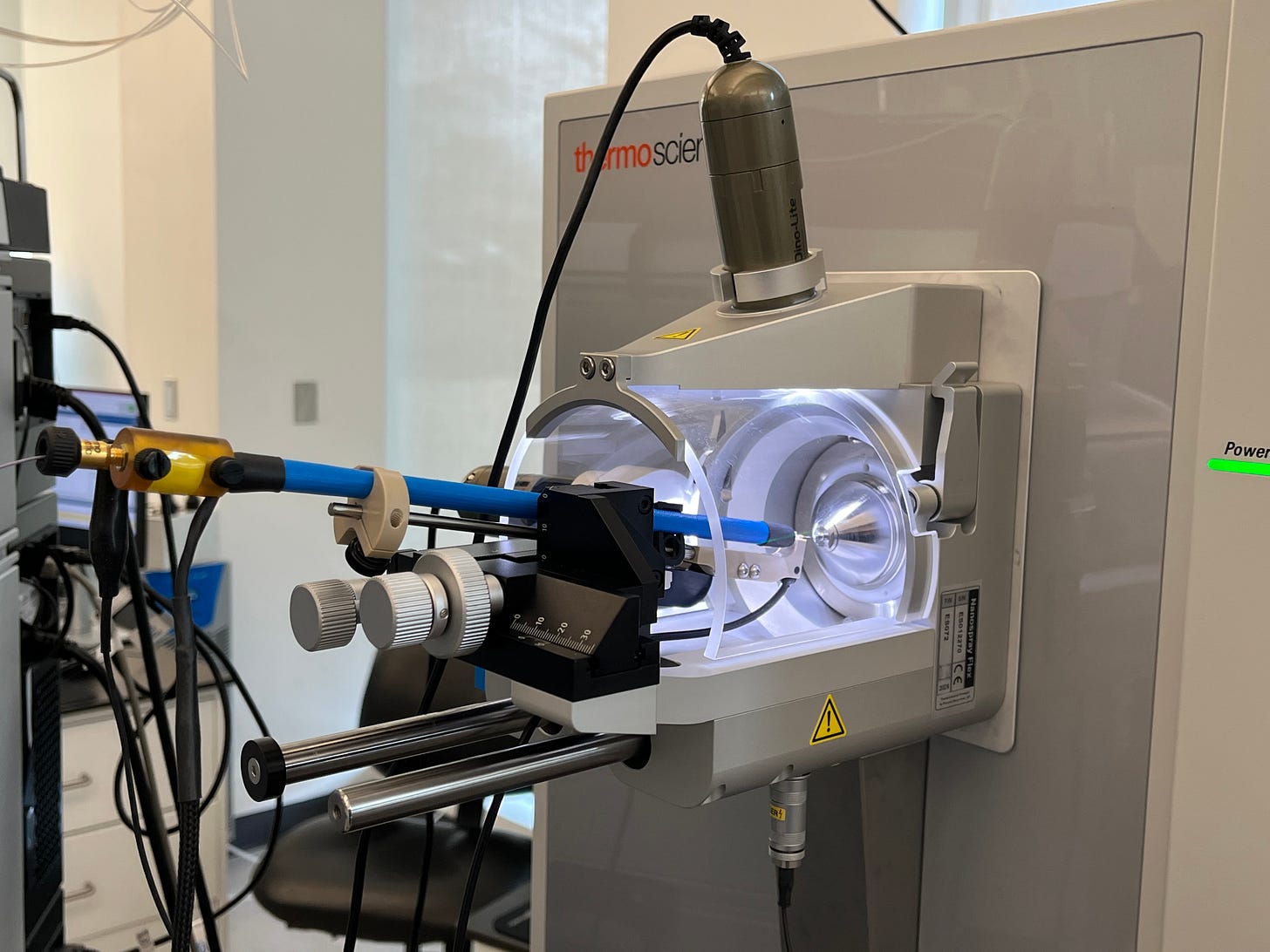 PTI occupies one half of a squat, glass-and-steel framed research facility in Watertown, Massachusetts. (The other half is occupied by Cultivarium, another non-profit research organization that I have previously covered for Asimov Press.) PTI’s laboratory is quite spacious. Instead of a clutter of experimental tools, like you might find in a standard molecular biology lab, the space is sparsely filled with machines to isolate cells, a handful of mass spectrometers, and computers to process data.