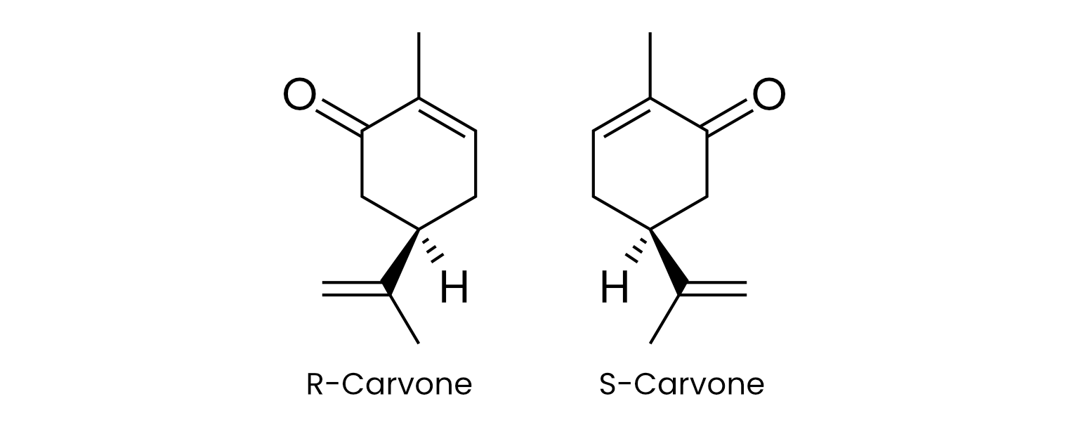 While some olfactory receptors respond broadly, meaning they can recognize and bind to several different structurally-related molecules, other receptors are exquisitely selective and bind to only one specific shape or stereoisomer.2 For instance, the two mirror-twin forms of the organic compound carvone smell strikingly different — one like spearmint (R-carvone), the other like caraway (S-carvone) — underscoring the nuance the nose brings to discriminating between such molecular mirror images.