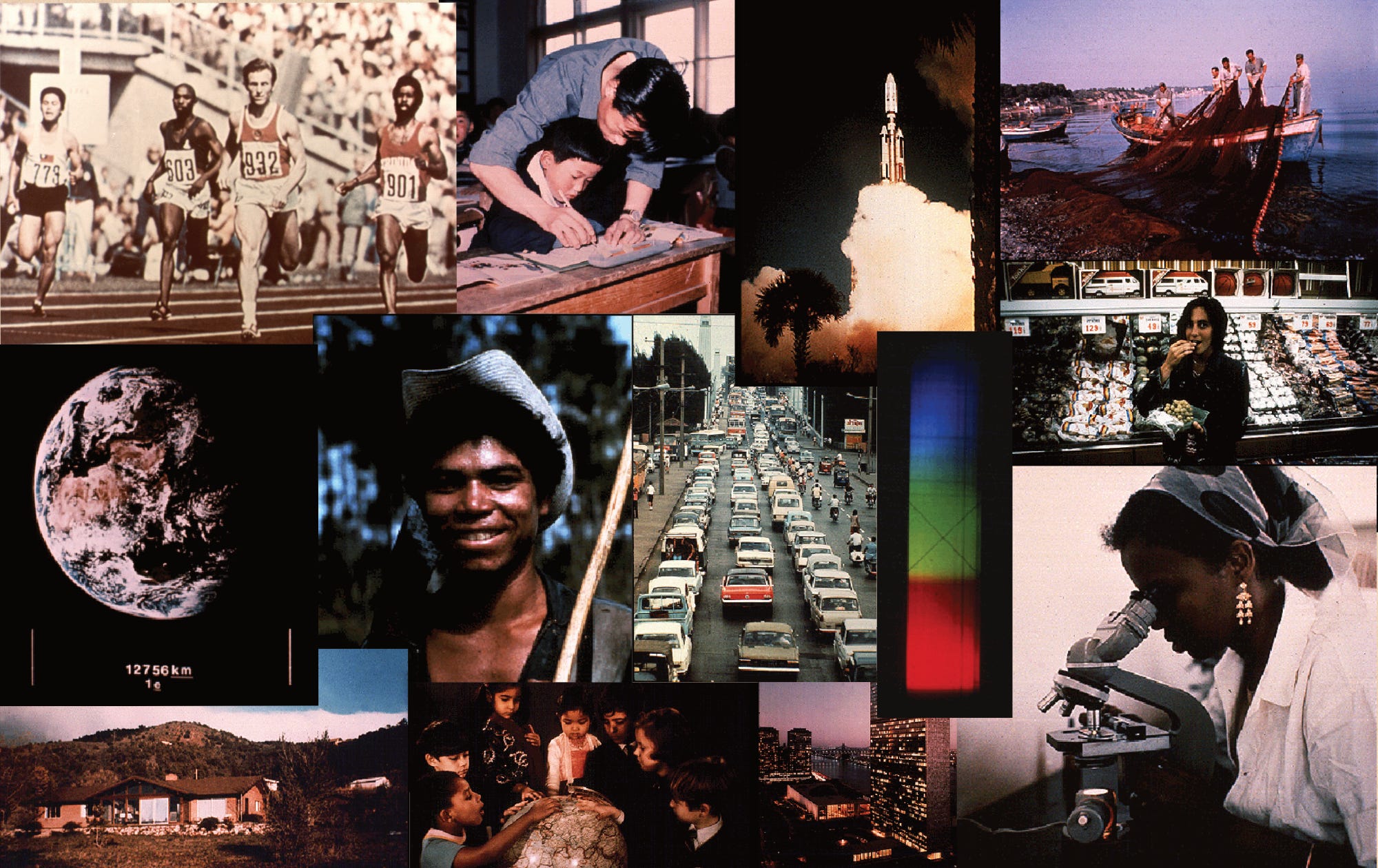 Lead image by Ella Watkins-Dulaney. Collage Credits: History of the Olympics, Picturepoint, London / UN/DPI Photo / NASA / National Astronomy and Ionosphere Center, Cornell University (NAIC) / Frank Drake.